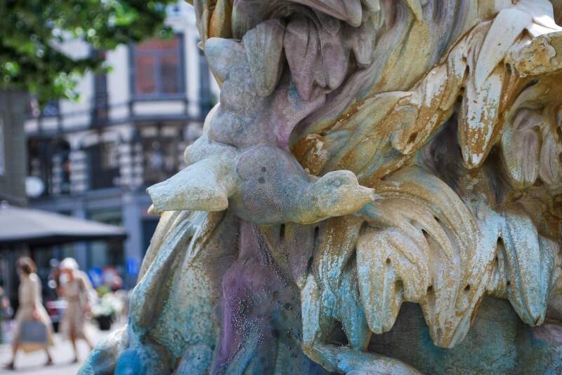 Ze brachten het mee naar Gent met de rotsvaste overtuiging dat ze een authentiek 16de-eeuws werk op de kop hadden getikt. Maar wat bleek? De fontein was helemaal niet zo oud, het was een namaak van rond het jaar 1900. Baron F. van Ackere schonk de fontein uiteindelijk rond 1950 aan de stad. Na het dempen van De Reep pronkte het standbeeld lange tijd op de Oude Beestenmarkt.